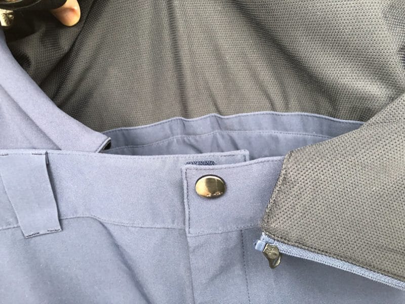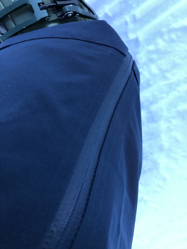 Les zips sont tous étanches sauf celui de la braguette. Les curseurs des grands zips qui permettent de largement ouvrir le pantalon latéralement possèdent des garages à curseur pour assurer une étanchéité à 100% : c’est important lorsque l’on est sous la pluie, sur un télésiège.