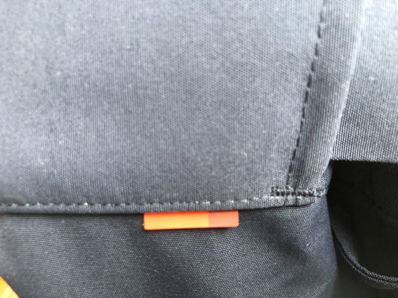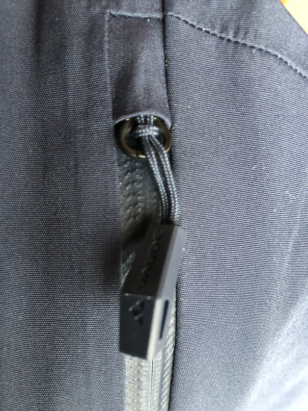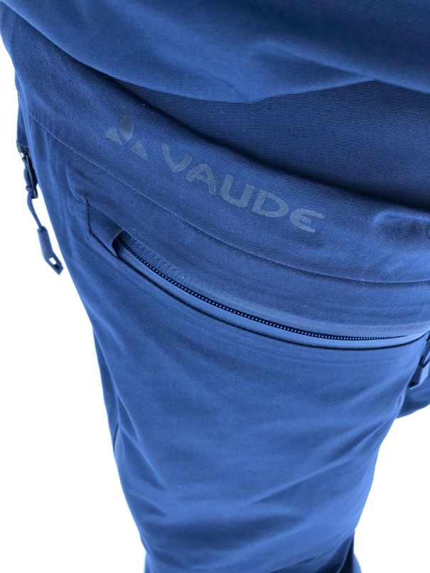 Plutôt que d’opter pour une batterie de boutons pression pour fermer la taille, Vaude a choisi un seul bouton pression avec un petit velcro autour : simple, efficace.