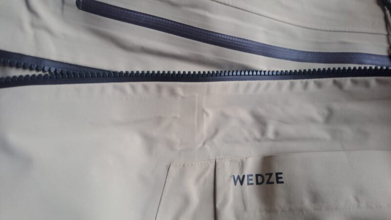 Son logo Wedze apparait discrètement sur le rabat de la poche poitrine et celui derrière, en haut du cou frise l’insignifiance…
