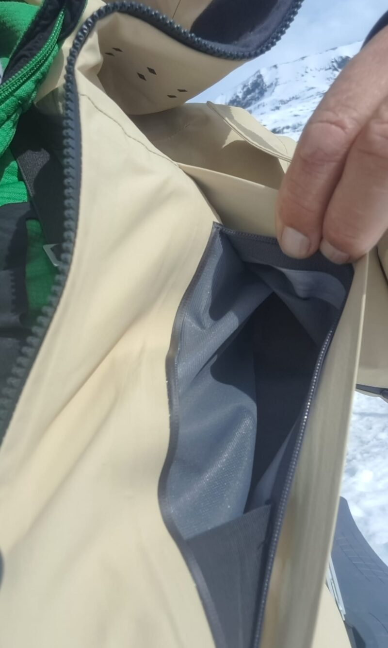 Nous avons apprécié que l’étanchéité nécessaire pour une veste de ce type et dans les conditions susceptibles d’être rencontrées, soit effective. Certes nous ne sommes pas au curseur maximum mais les 15000 schmerbers annoncés ont été largement suffisants dans les conditions parfois très humides rencontrées. Nous avons l’ensemble des zips (Ykk, pour la réputation de qualité) parfaitement étanches.